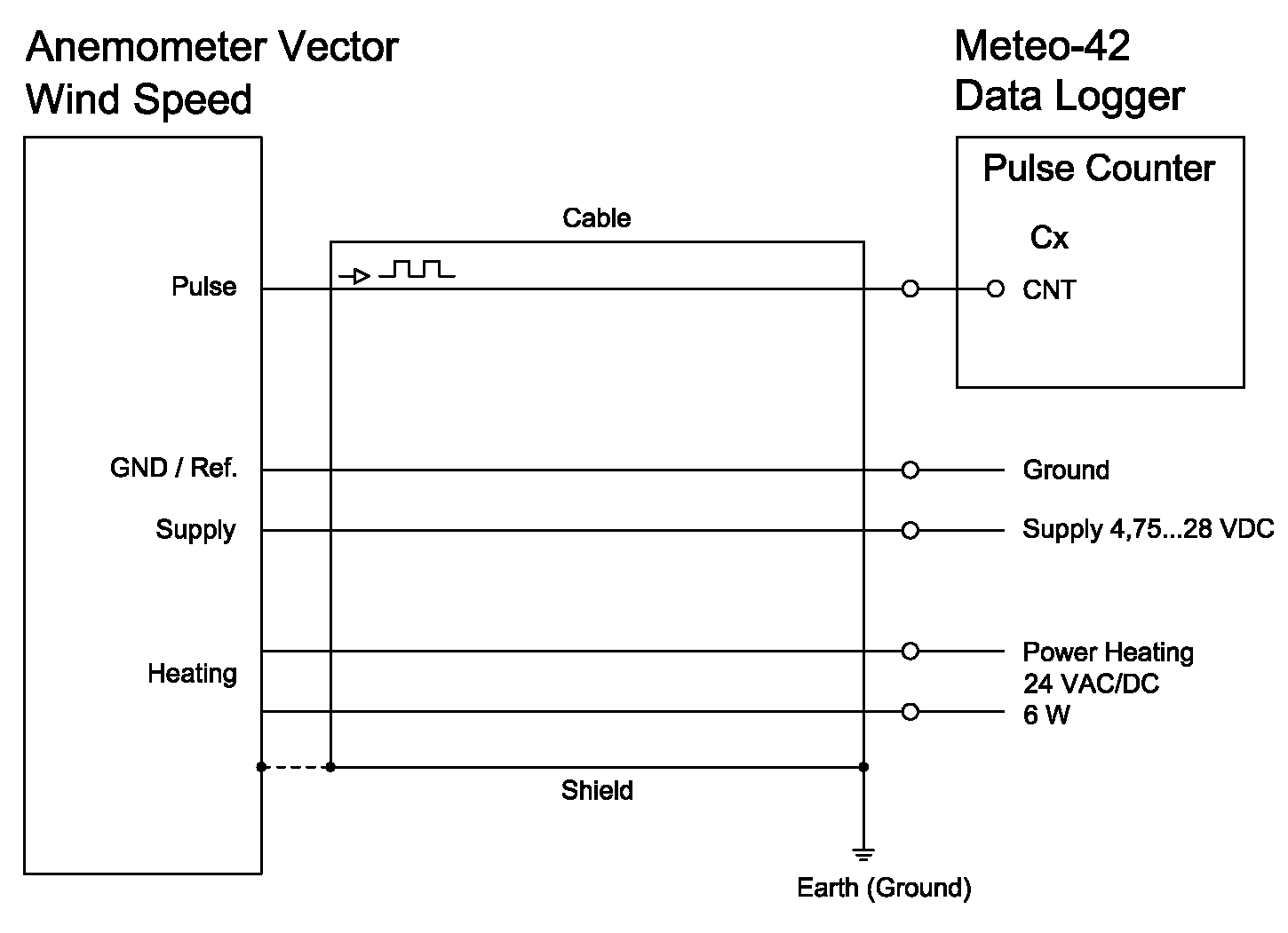 The low-inertia 3-cup rotor is set into rotation by the wind. The wheel is scanned optoelectronically and the measuring value is available at the output as a digital signal.