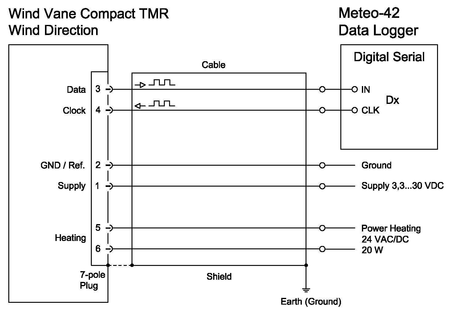 The wind direction is detected by a low-inertia wind vane. The axis of the wind vane is running in ball bearings and carries a diametrically magnetized magnet at the inner end.